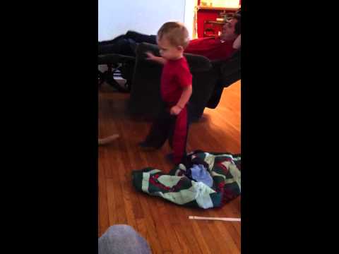 Next he then decided to wear Daddy's shoes to see if they fit now that he is in a big boy bed.